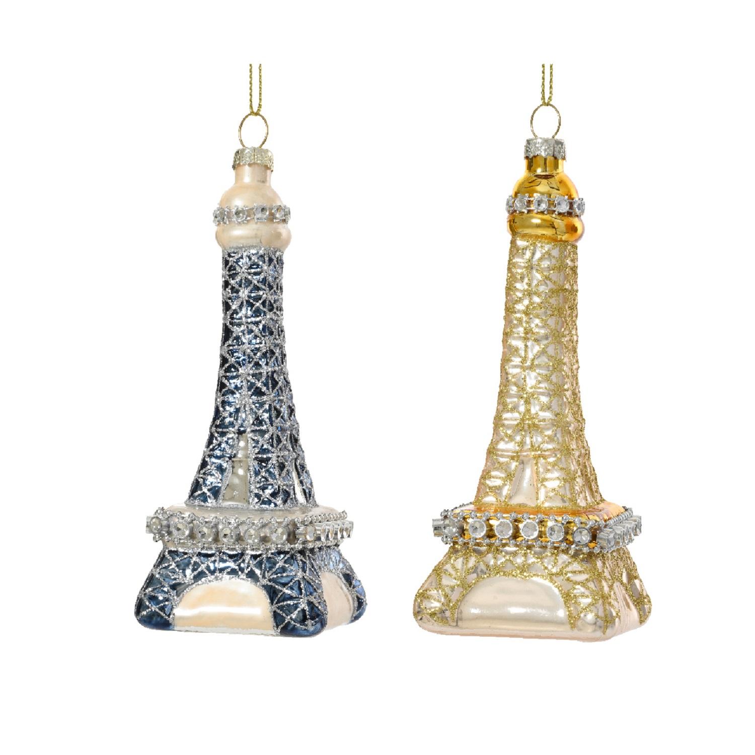 Декор Эйфелева башня стекло синяя/золотистая 14х5,5см 2 в ассорт