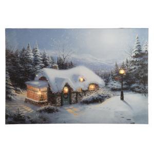 Декор Картина Зимняя деревня 28х38см с мерцающими огоньками 2 батарейки АА 5диодов LED indoor 2 в ассорт