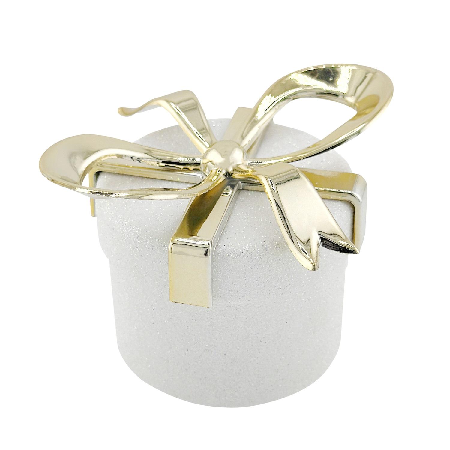 Декор Коробочка Сюрприз белая с золотым бантом круглая 7х7х6,5см