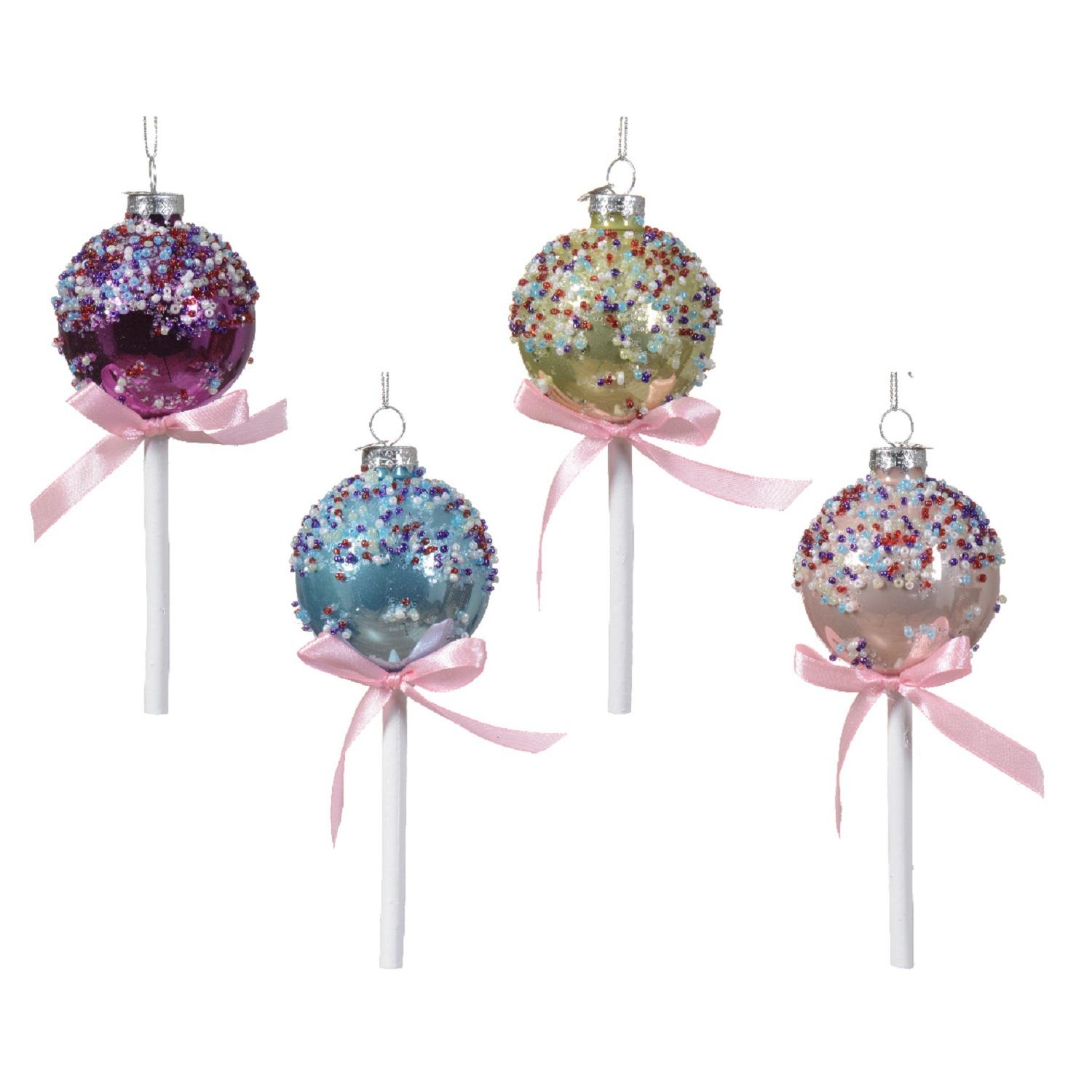 Декор Леденец стекло с посыпкой из бисера d6см 4 в ассорт