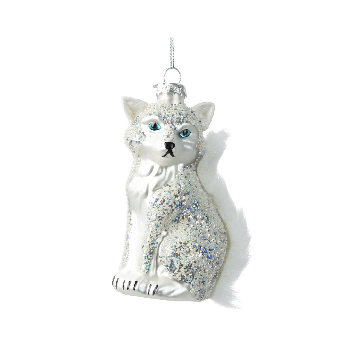 Декор Лиса стекло белая с бусинками и хвостом из меха 11х6,2см