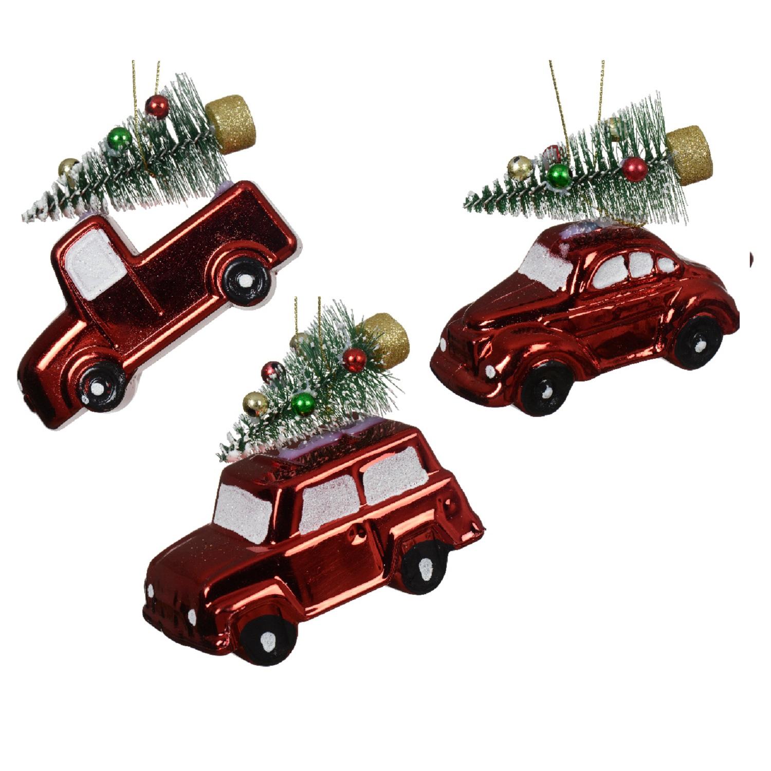 Декор Машинка красная с елкой 10см 3 в ассорт