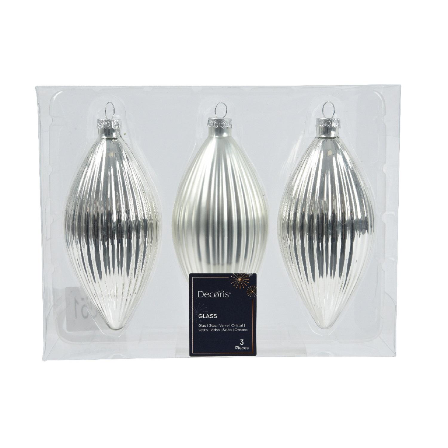 Декор Олива стекло серебристая глянцевая/матовая 13х6см 3шт/уп