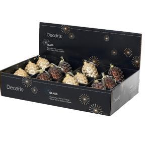 Декор Шишка стекло жемчужная/коричневая матовая с прозрачным бисером 12х6см 2 в ассорт