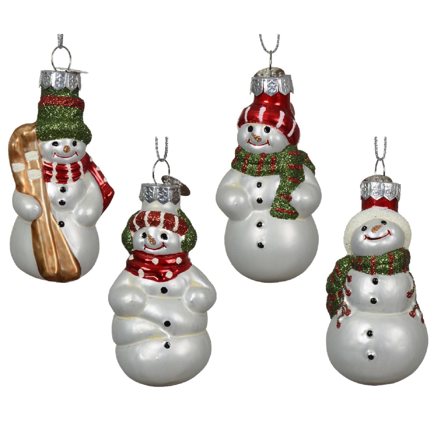 Декор Снеговик стекло белый в красной/зеленой шапке и шарфе 3,5х4,5х7,5см 4 в ассорт