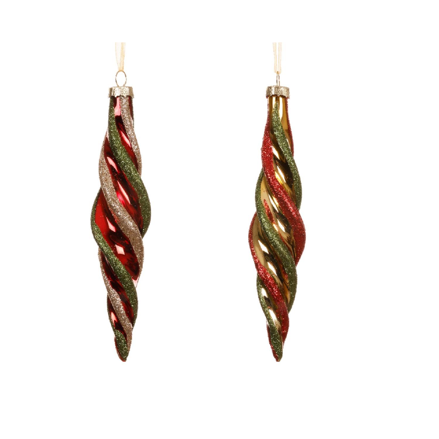 Декор Сосулька стекло золотая с красными/зелеными завитками 16см 2 в ассорт