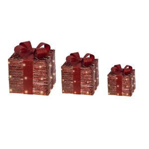 Декорация Подарки красные с красным бантом 7 батареек АА таймер 6/18ч 15х15х20/20х20х25/25х25х30см 30LED MICRO теплобелая IP-20 indoor