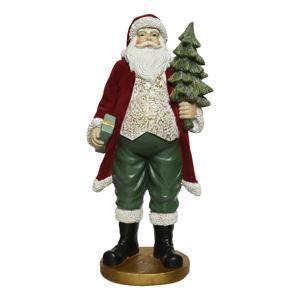 Декорация Санта в красном с куклой Щелкунчика и с мешком подарков 15,7х17,4х38см
