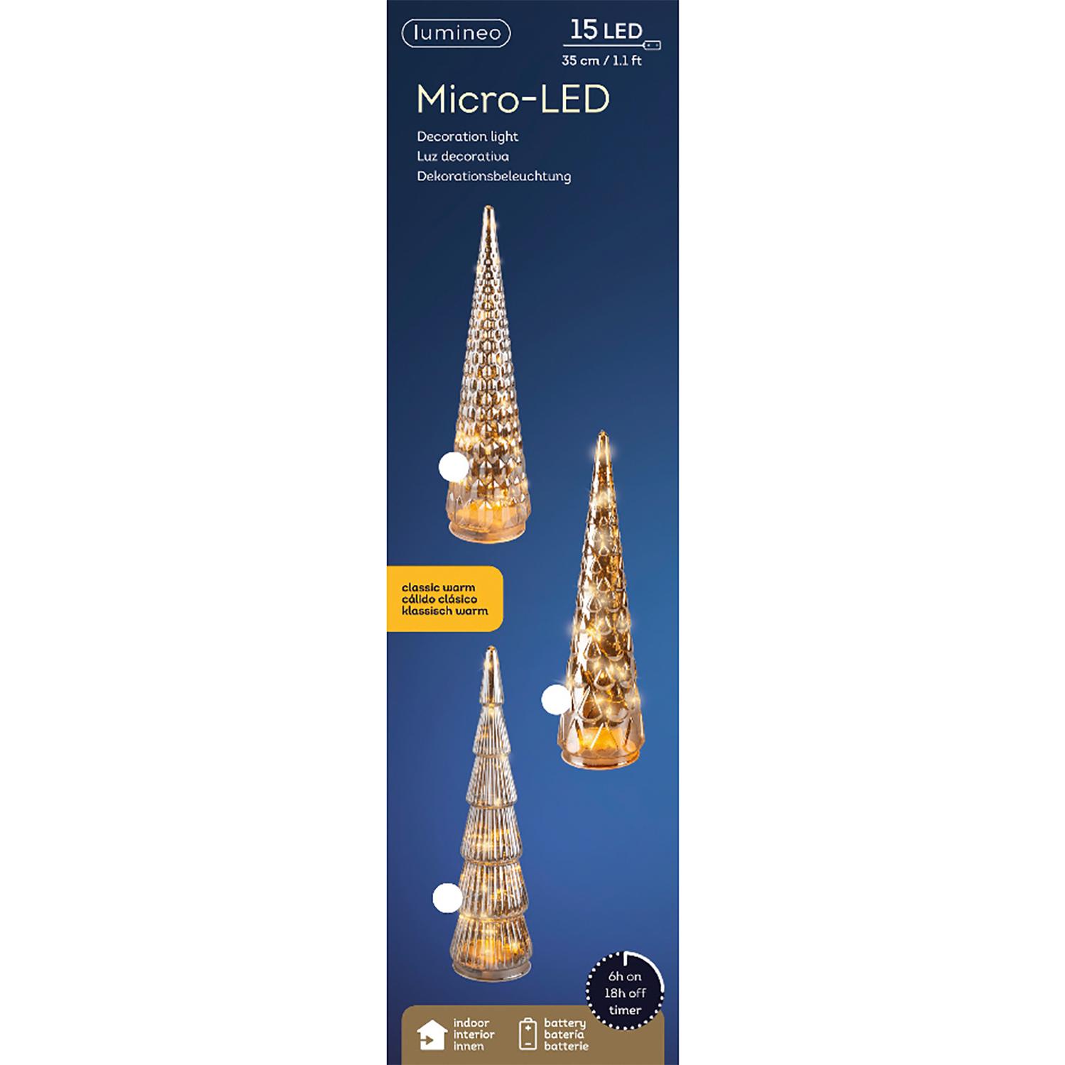 Декорация светодиодная Елка-Конус прозрачная 3 батарейки АА таймер 6/18ч d9х33см 15LED MICRO теплая IP-20 indoor 3 в ассорт