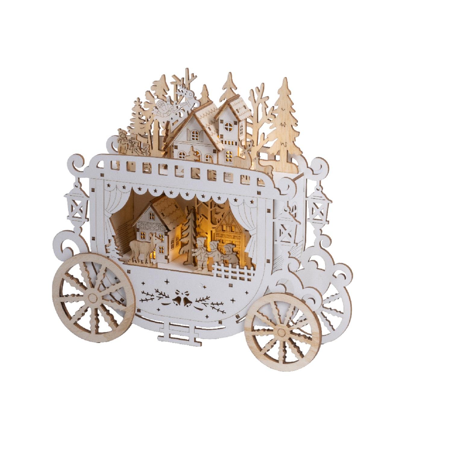 Декорация светодиодная Карета белая 23,5х24,8х8см 2 батарейки АА таймер 6/18ч 8LED MICRO теплая IP-20 indoor