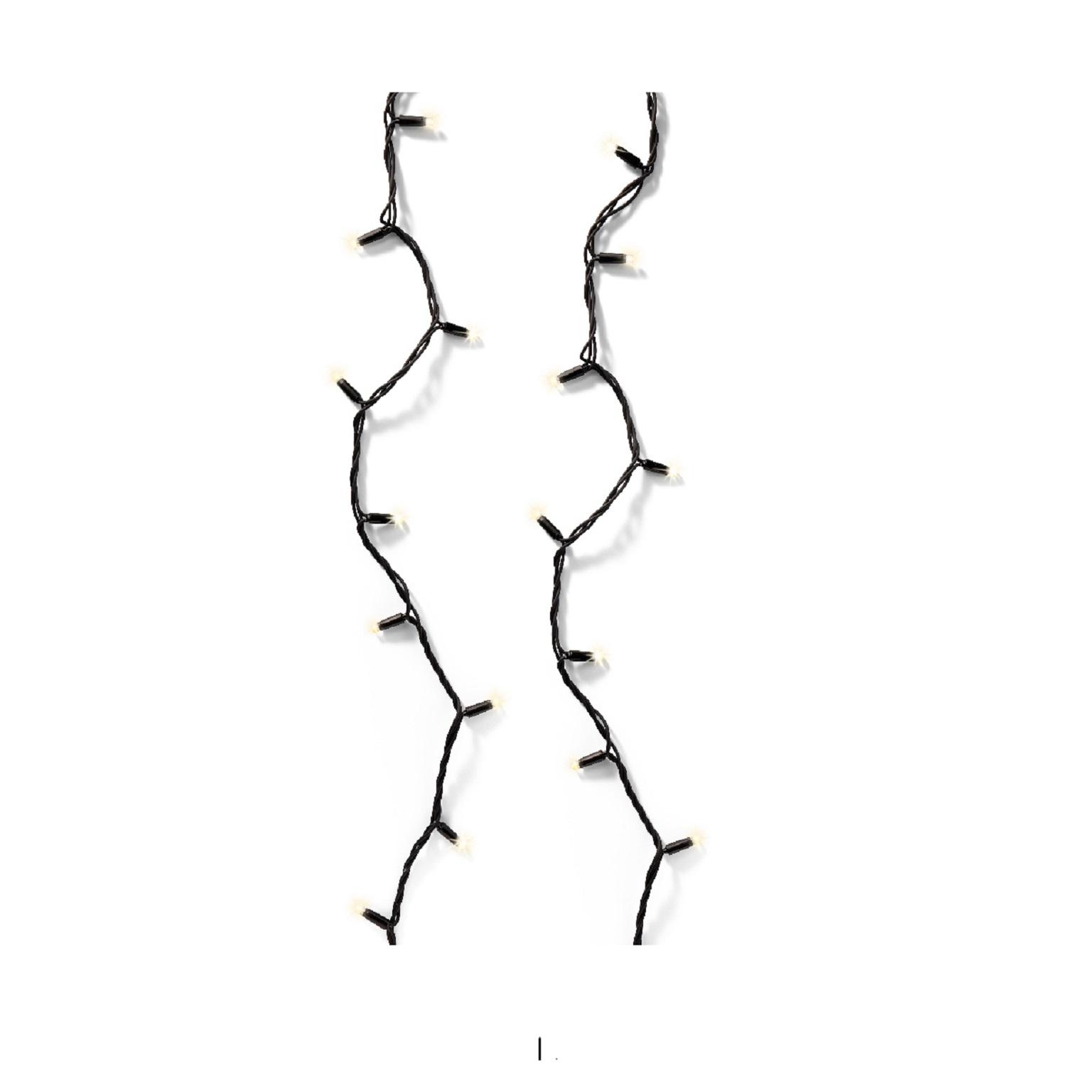 Гирлянда-цепочка 9,5 м — стильное и атмосферное решение для уличного оформления. Тёплый белый свет 96 LED создаёт мягкое сияние, а эффект блеска добавляет праздничной динамики. Благодаря прочному чёрному кабелю и степени защиты IP-44, гирлянда отлично подходит для использования на улице — на фасадах, верандах, деревьях, балконах или входных группах.Эта модель является дополнительной, что позволяет легко расширить вашу световую конструкцию и добиться более яркого и протяжённого свечения.