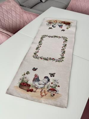 Настольная дорожка Петухи и курочки 37х100см гобелен без люрекса RUNNER1287NA-37