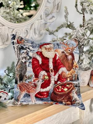 Наволочка Дед Мороз с оленями 45х45см гобелен без люрекса SCENERY-NV