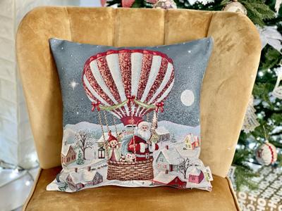 Представьте: в тишине морозной ночи, под светом огромной луны и мерцающих звезд, воздушный шар медленно плывет над заснеженными крышами маленьких домиков. В его корзине – Дед Мороз и его верные помощники, несущие радость и подарки в каждый дом. Это не просто декоративная подушка – это осязаемая мечта, прибывшая прямиком из европейских мастерских, чтобы наполнить ваш семейный очаг искрящейся радостью и атмосферой самого настоящего рождественского волшебства.