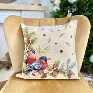 Наволочка Снегири гобелен с золотым люрексом 45х45см KISS1066