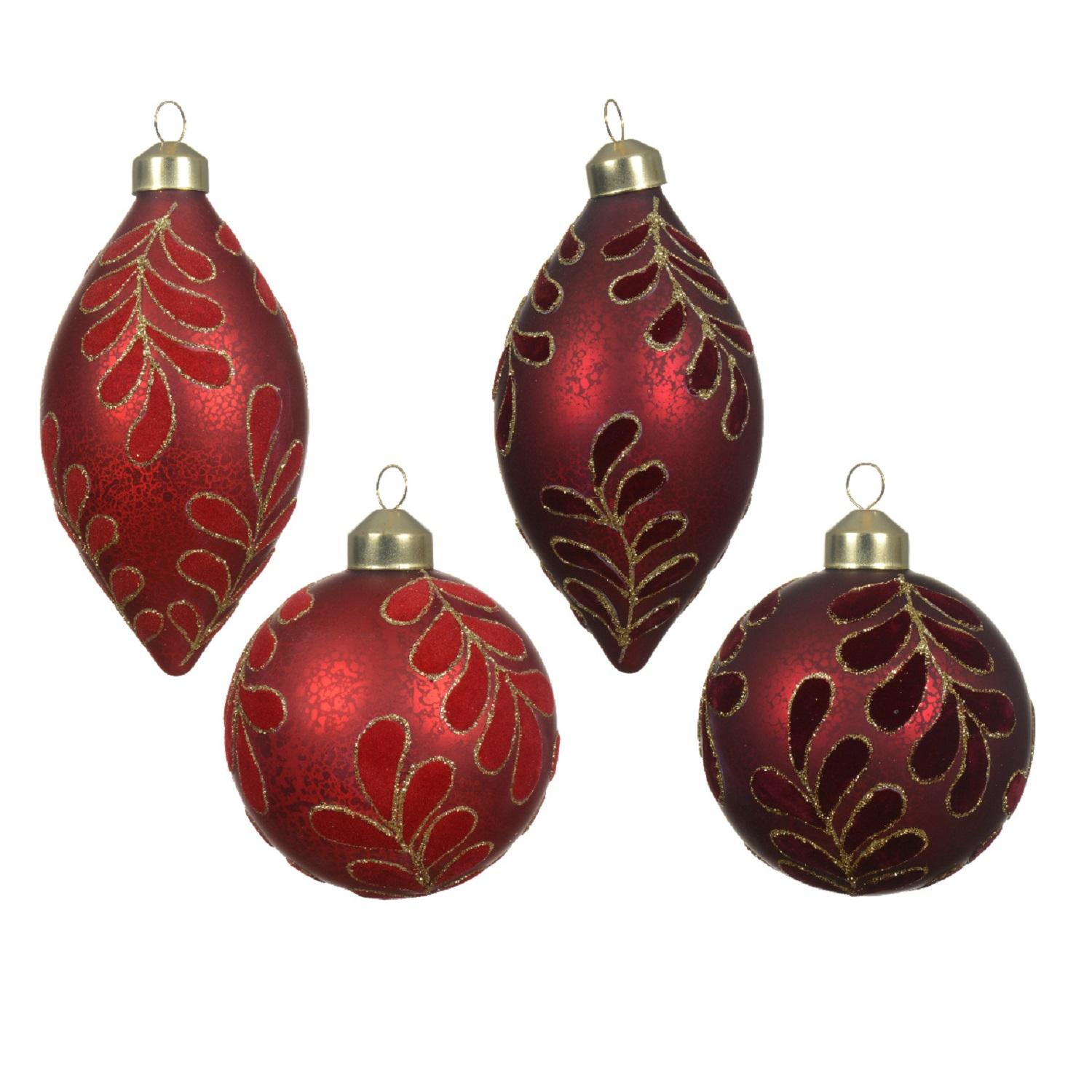 Шар/ Олива стекло красная/бордовая с бархатными листьями d8см 4 в ассорт