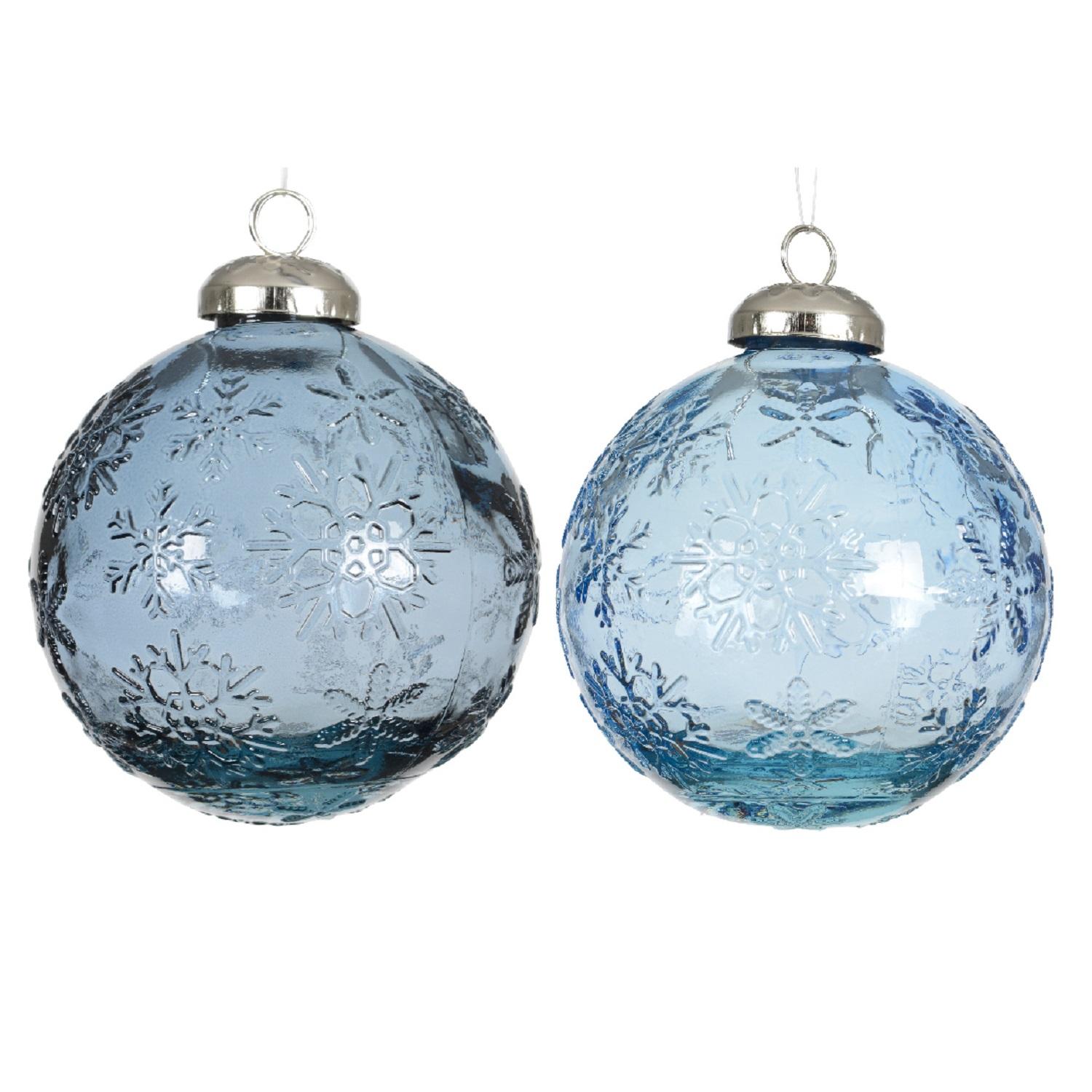Шар стекло синий/голубой прозрачный со снежинкой d10см 2 в ассорт