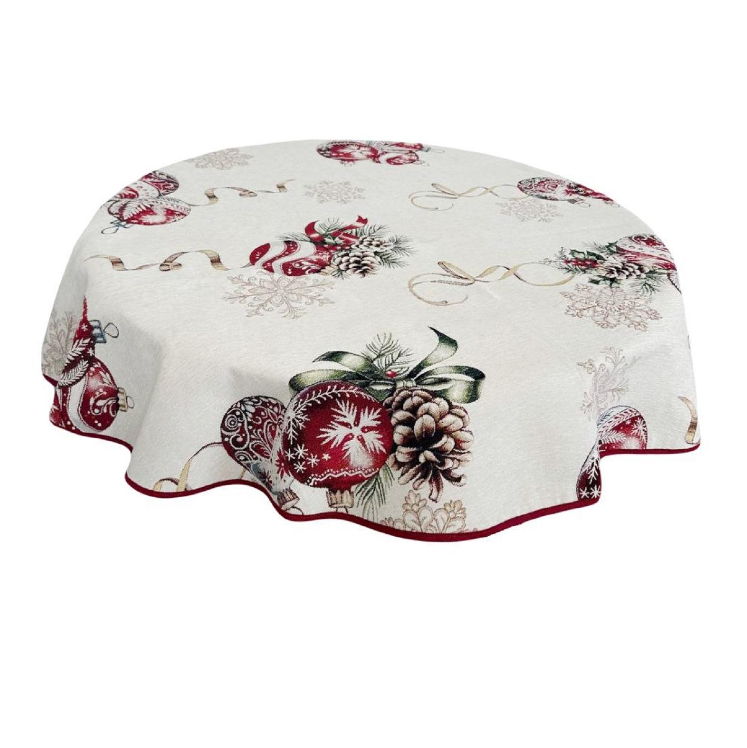 Скатерть Новогодние игрушки d240см гобелен с микрофиброй и с золотистым люрексом ALLOVER34278-240D