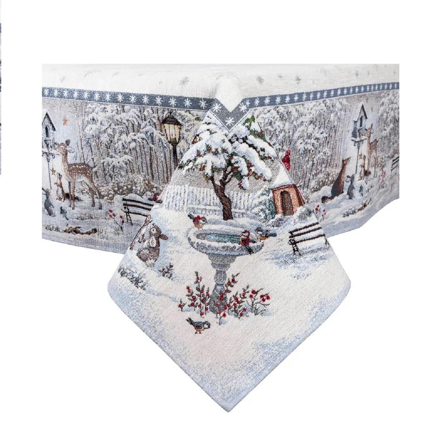 Скатерть "Зимняя Сказка в Саду": Оживите чудеса зимнего леса прямо у вас дома