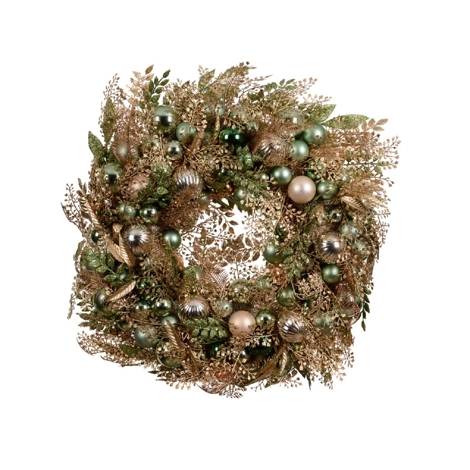 Лесное Золото: Роскошный Венок с Золотыми и Зелеными Шарами (d50см)